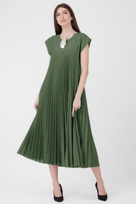 Maneci aripioare care acopera umerii Pliseul incepe de sub sani Decolteu rotund la baza gatului Are buzunare laterale ascunse Material: 100% poliester, usor creponat ce nu necesita calcare Are talie unica si se potriveste pentru masurile S, M, L Dimensiuni:…