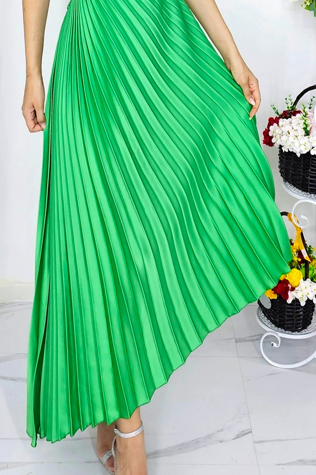 Rochie plisata asimetrica Elza, cu decupaj in zona taliei si croi lung, Marime universala S/M Rochia care ți se potrivește este o veritabilă poezie în formă de țesătură și design. Aceasta emană grație și subliniază frumusețea și feminitatea ta într-un mod poetic. Silueta rochiei este elegantă și fluidă, se contureaza delicat pe formele tale, evidențiindu-ți linia subțire și curbele armonioase. Materialul ales este fin și luxos, adăugând o notă de mister și rafinament. Fie că este vorba despre tull ușor care dansează în bătaia vântului sau despre pliuri bogate și intrigante, fiecare textură aduce propria sa poveste. Paleta de culori este aleasă cu grijă pentru a te pune în valoare și pentru a exprima starea ta de spirit. Poate fi un crem deschis, simbolizând inocența și puritatea, sau un negru profund, sugerând eleganță și mister. Poate fi și un mov regal, un albastru seren sau un roșu pasional, fiecare nuanță adăugându-și propriul vers poetic la povestea ta. Rochia Elza este o piesă deosebită care emană un aer sofisticat și atrăgător. Confectionată dintr-un material de înaltă calitate, această rochie este creată pentru a impresiona și pentru a evidenția eleganța purtătoarei. Partea superioară a rochiei prezintă un decolteu asimetric, care subliniază frumusețea gâtului și a umerilor. În zona taliei, rochia prezintă un decupaj îndrăzneț și modern, care conferă un aspect uimitor. Decupajul este proiectat pentru a evidenția talia, accentuând linia corpului și adăugând o notă subtilă de senzualitate. Detaliile în jurul decupajului sunt finisate cu atenție, asigurându-se că acesta se integrează perfect în designul general al rochiei. Rochie Elza a fost creata pentru a aduce un tribut puterii feminine ce uimeste prin contraste neasteptate! Fusta plisată a rochiei este cu adevărat spectaculoasă. Plisurile fine și bine definite conferă un aspect fluid și dinamic, creând o mișcare gracioasă la fiecare pas. Fusta are un croi lung, care cade în mod elegant și se îndreaptă către glezne. Această lungime conferă rochiei o eleganță aparte, fiind perfectă pentru evenimente formale sau serate speciale. Rochia Elza este disponibilă într-o varietate de culori, precum negru clasic, fucsia intens sau albastru elegant, oferindu-ți posibilitatea de a alege nuanța care se potrivește cel mai bine stilului și personalității tale. Pentru a completa și a accesoriza rochia poti alege bijuterii subtile și rafinate care să completeze frumusețea rochiei tale. Optează pentru cercei lungi și eleganți cu pietre prețioase sau perle, un colier subțire cu un pandantiv delicat sau o brățară subțire. Aceste accesorii vor adăuga un plus de strălucire și vor sublinia eleganța ta. Alege un plic elegant și strălucitor care să completeze stilul rochiei. Optează pentru o geanta/plic din colectia fashionforyou într-o nuanță complementară, care să adauge un accent de culoare sau alege unul într-o nuanță neutră, precum argintiu sau auriu, care să se potrivească cu orice. Si nu in ultimul rand alege o pereche de pantofi stiletto în culori asortate cu rochia ta. Optează pentru un model cu toc înalt și subțire, care să-ți ofere un aspect alungit și gratios. Poți alege pantofi într-o nuanță neutră pentru un aspect clasic sau poți adăuga un strop de îndrăzneală cu o pereche de pantofi colorați sau cu detalii strălucitoare. Acestea sunt doar câteva sugestii pentru a accesoriza rochia ta elegantă și poetică. Alege accesorii care să te reprezinte și care să completeze stilul și personalitatea ta, adăugându-ți un plus de strălucire și frumusețe la ținuta ta specială. Caracteristici rochie: – croiala lunga, cambrata – fara inchidere – decupaj lateral in zona taliei – rochie cu umerii goi si bretea pe un umar – decolteu asimetric – textura material delicata si model plisat – model prezent in mai multe variante cromatice – material: 100% polyester – marime universala compatibila cu masurile S si M Imaginile Fashionforyou au caracter informativ, iar nuanta, tonul si intensitatea culorii pot varia in functie de monitor/ecran telefon.