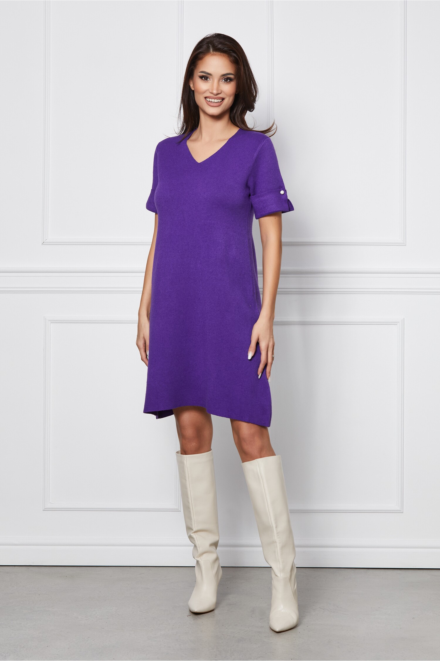 Rochie casual din tricot accesorizata cu nasturi stralucitori la maneci. Are decolteu in v, maneci scurte si croi tip A. Rochie casual Decolteu in v Maneci scurte Croi tip A Fara captuseala Fara inchidere Nasturii sunt detasabili Material: Tricot Compozitie: 50% Viscoza, 30% Poliester, 20% Poliamida Instructiuni de intretinere: *Va rugam verificati eticheta produsului inainte de curatare! *Modelul are inaltimea de 174 cm. *Va rugam sa retineti ca o usoara discrepanta de culoare ar trebui sa fie acceptabila datorita luminii si luminozitatii ecranului. *Va rugam verificati ghidul de marimi, in cm, pentru a alege corect marimea.
