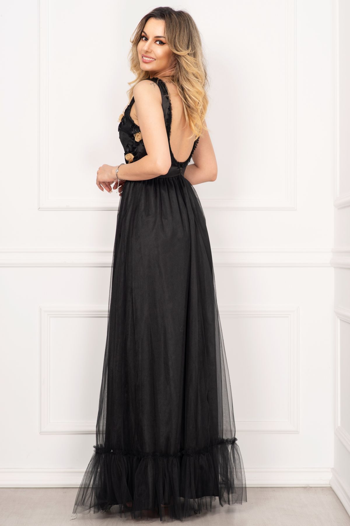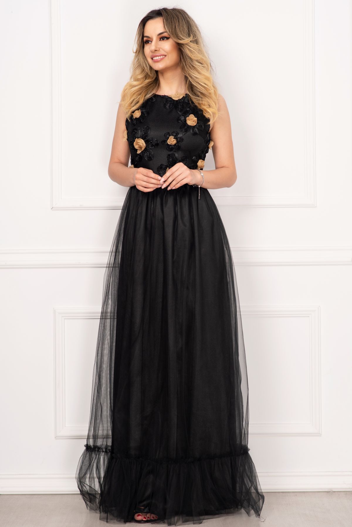 Rochie Pretty Girl de ocazie lunga din tul cu flori 3D la bust p> ; Rochie lunga de seara ; Rochie neagra cu flori 3D negre cu bej la bust ; Spatele gol ; Cret la spate ; Fara maneca ; Tul cu volanas in partea de jos ; Dublura neagra din saten ; Lungime de la sub brat: 134 cm ; Material 100% poliester ; Fabricat in Romania ; Rasfata-te InPuff cu cele mai frumoase rochii lungi de seara! p> * Modelul nostru poarta marimea 36(S) p> * Echipa InPuff face toate eforturile in a prezenta cat mai bine culorile produselor prezentate pe site insa culorile pot diferi de situatia reala si pot varia în functie de setarile monitorului/dispozitivului dvs! p>