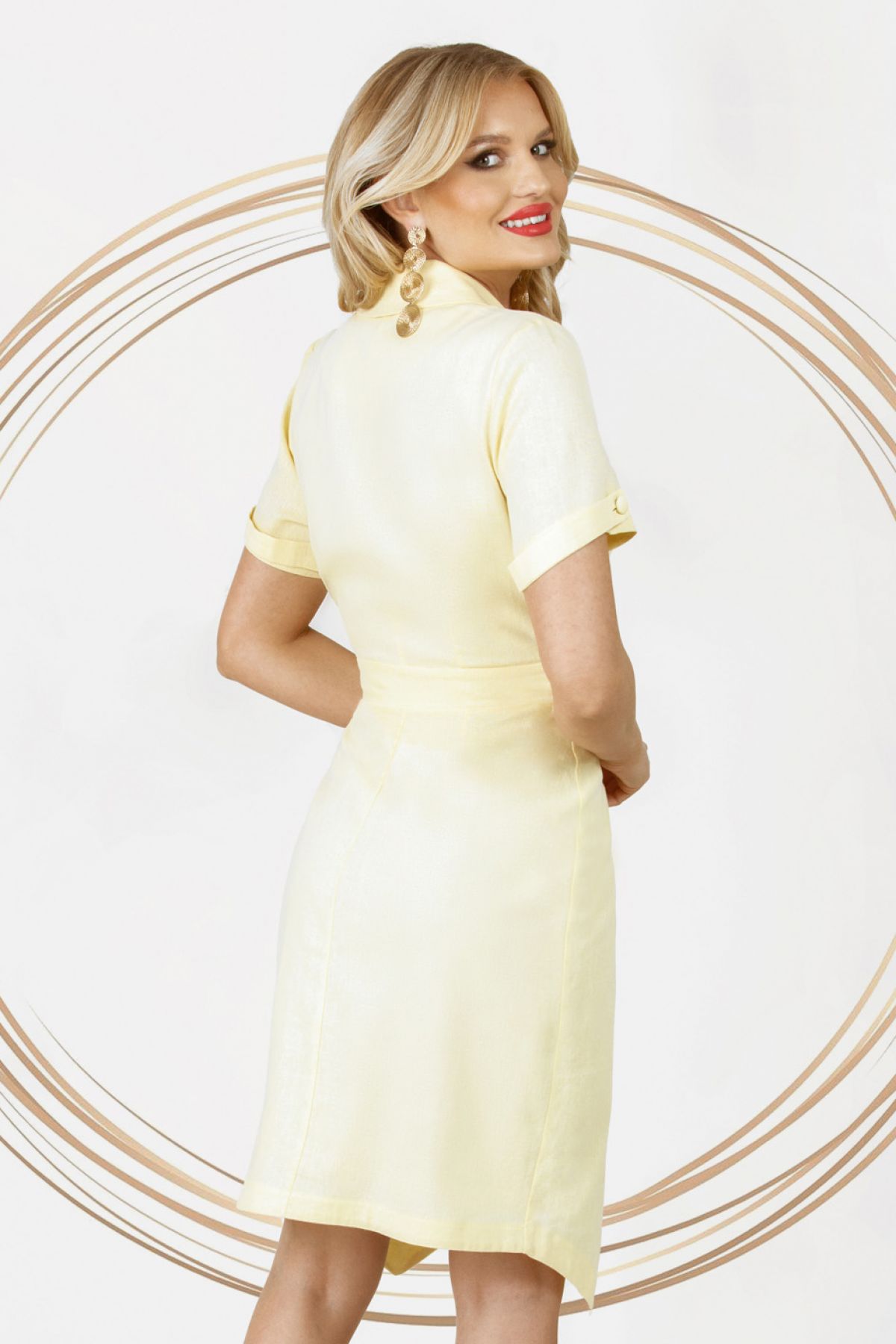 Comandă online o Rochie Pretty Girl galbena tip sacou din in asimetrica cu livrare rapidă prin curier sau easybox!