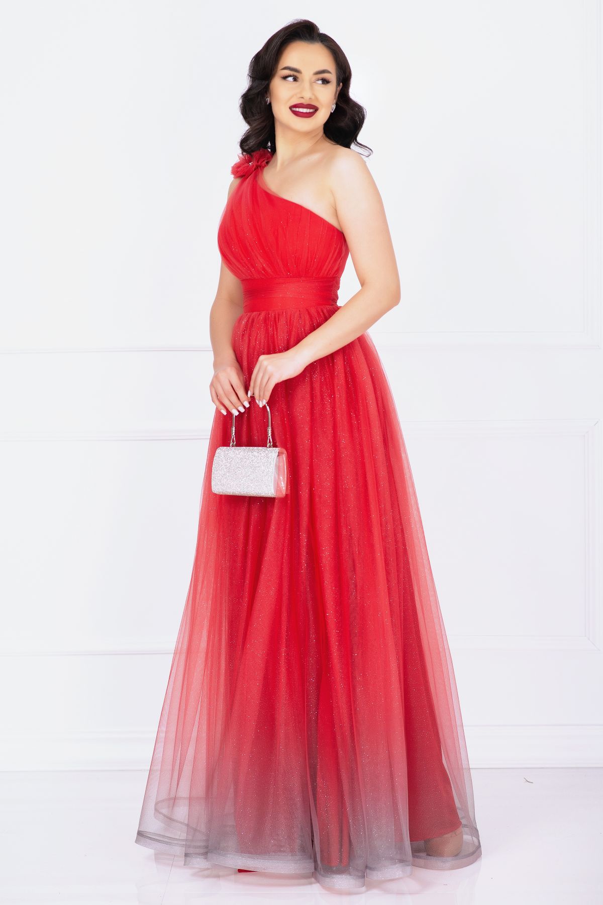 Rochie rosie de nasa Kendra lunga in degrade eleganta din tulle cu floare 3D ; ;strong style="color:#ff0000">CROI MIC! strong> ; Culoare: rosu in degrade ; Croi: clos ; Fara maneci ; Fronseuri in zona bustului ; Buretata in zona bustului ; Decolteu asimetric ; Textura: tulle ; Sclipici pe toata suprafata rochiei ; Inchidere cu fermoar la spate ; Prezinta dublura ; Rejansa in partea de jos ; Floare 3D aplicata pe umar cu strassuri ; Crapatura ampla pe picior ; Compozitie: 100% poliester ; * Echipa noastra face toate eforturile in a prezenta cat mai bine culorile produselor prezentate pe site insa culorile pot diferi de situatia reala si pot varia în functie de setarile monitorului/dispozitivului dvs!