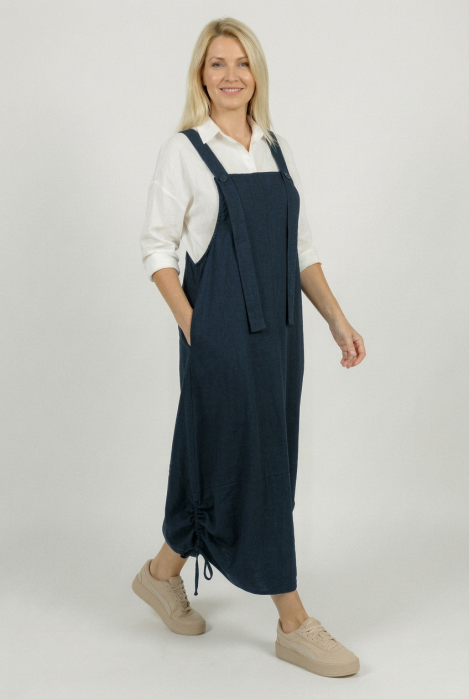 Bretele reglabile ce se inchid pe fata cu nasture metalic Buzunare laterale Material: 50% bumbac, 45% nylon, 5% elastan Este talie unica si se potriveste pentru marimile: S, M, L, XL, 2XL Dimensiuni: bust 114 cm, sold 140 cm, lungime 135 cm reglabila…