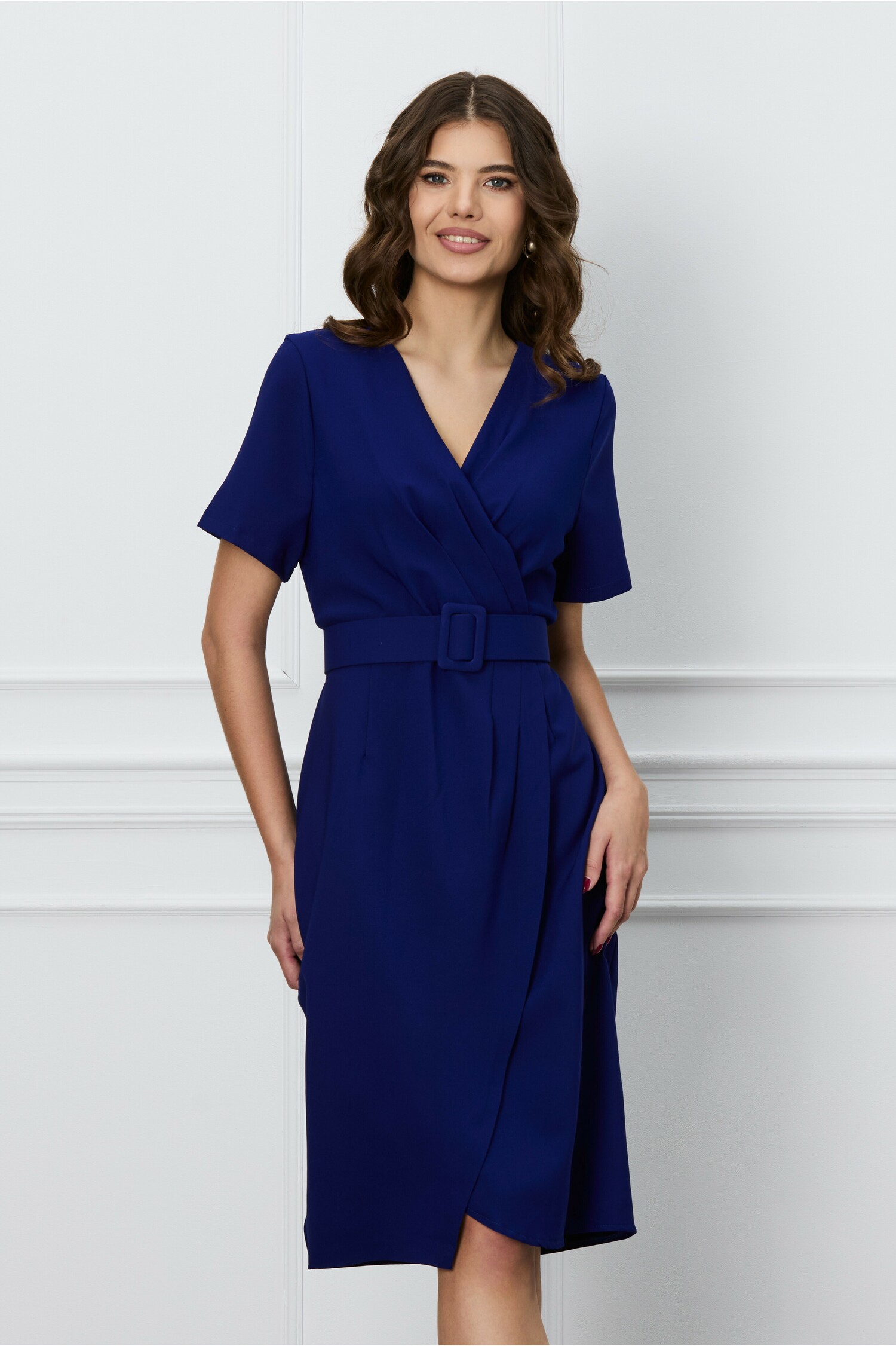 Comandă o Rochie Sorina albastra cu pliuri si curea in talie cu LIVRARE și RETUR GRATUIT!