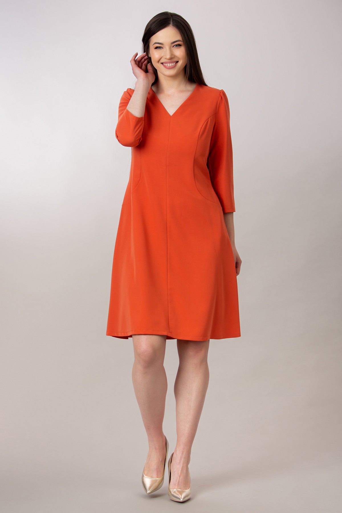 Rochie Janine din stofa fina, croi feminin, semiclos cu decolteu in V.