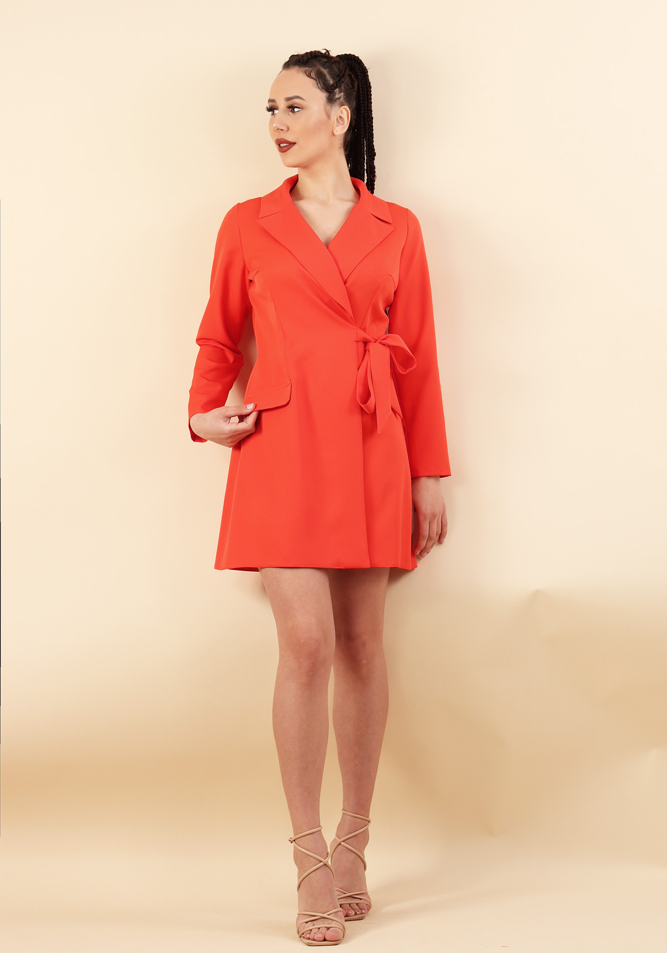 Rochie tip sacou cu guler si rever,maneca lunga,croi cambrat,clapeta pe o parte,fara captusala,inchidere in lateral cu cordon.Material stofa