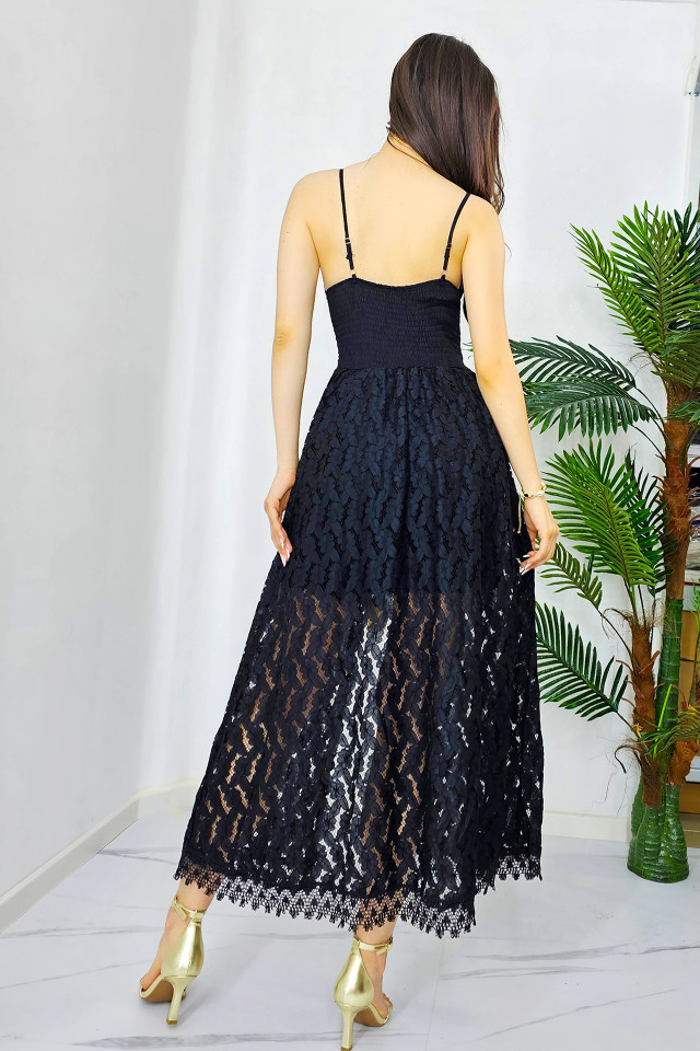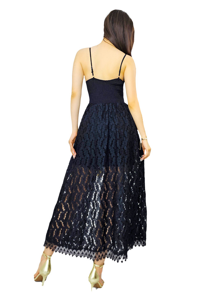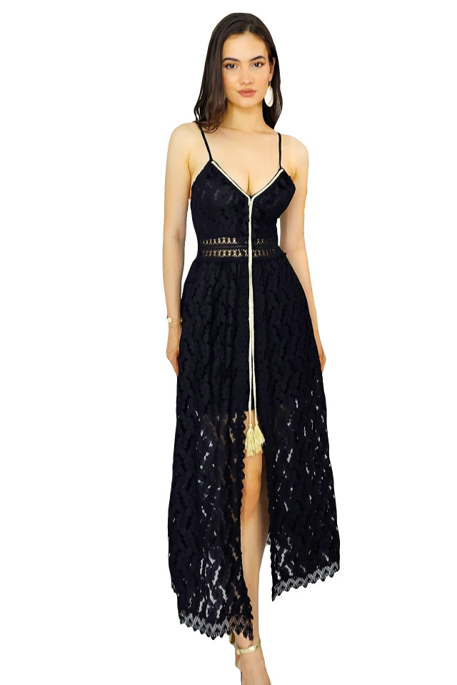 Comandă online o Rochie tip salopeta Amyne, cu aspect brodat si ciucuri decorativi, Negru, Marime S/M cu livrare rapidă prin curier sau easybox!