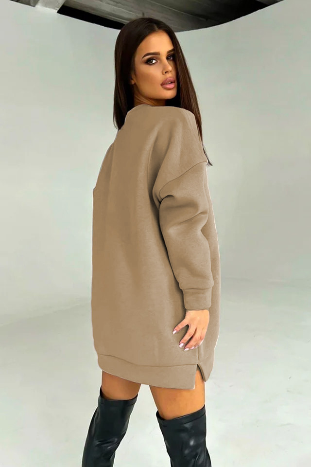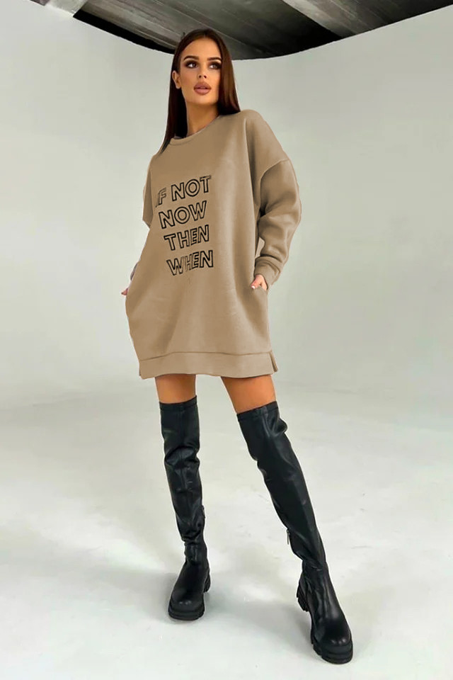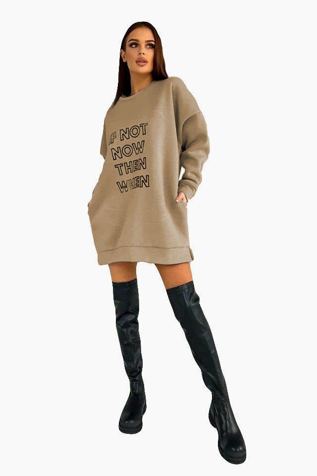 Rochie vatuita tip hanorac, IF NoT, croiala oversize, Bej