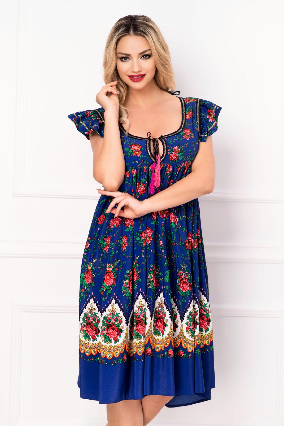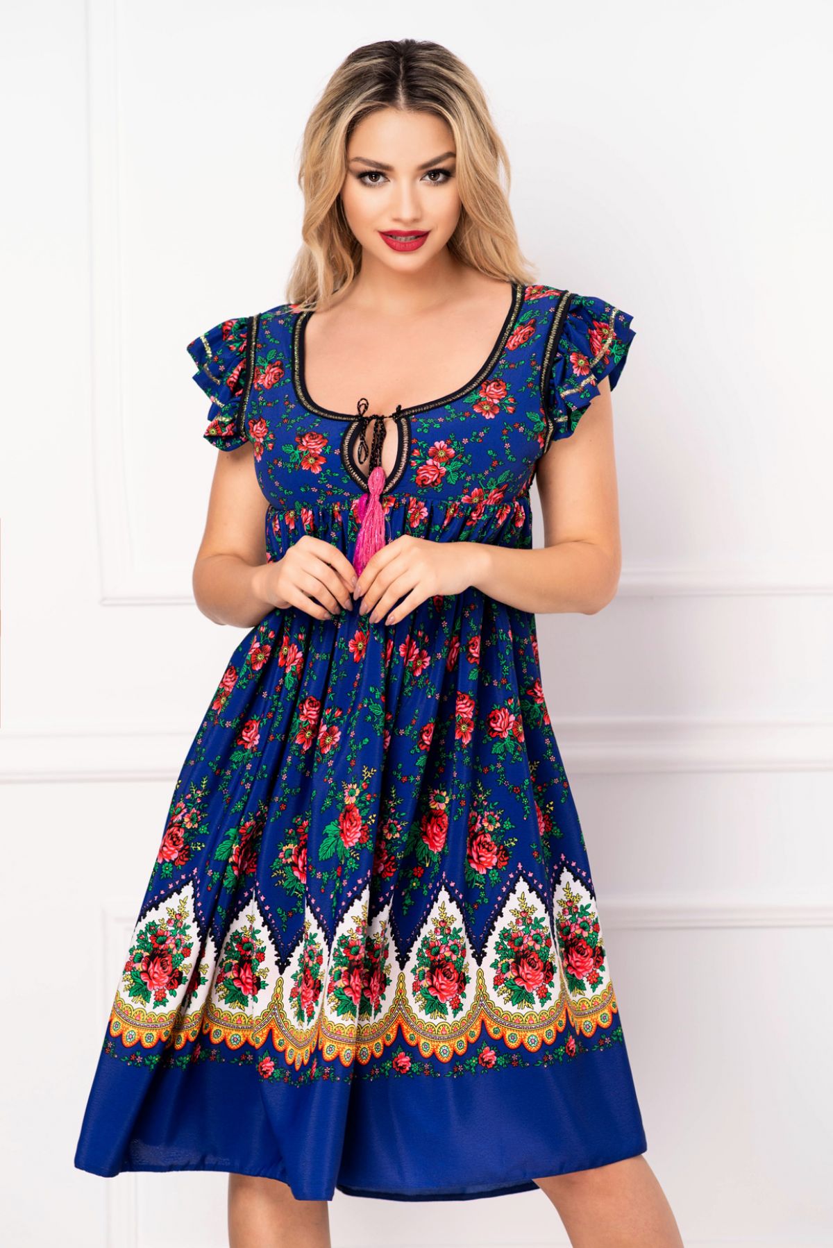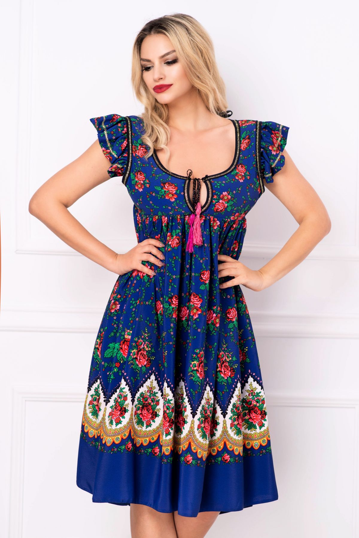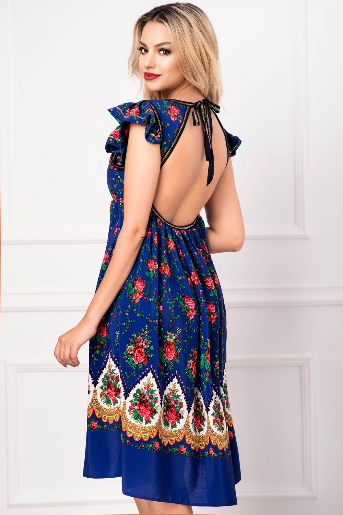 Comandă online o Rochie Venezia lejera albastra cu decupaj la spate si imprimeu floral cu livrare rapidă prin curier sau easybox!
