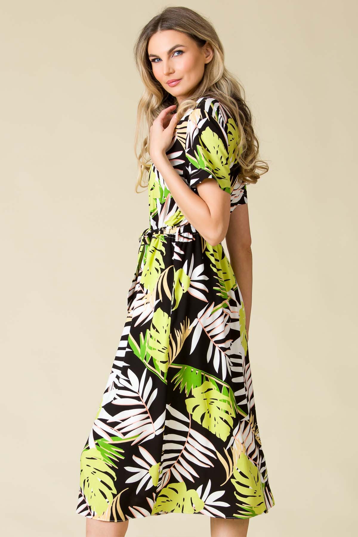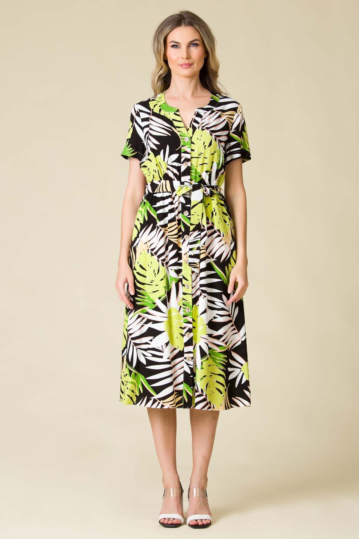 Rochie Jungle din viscoza imprimata, croi tip camasa, model excelent de integrat in garderoba de vacanta si nu numai.