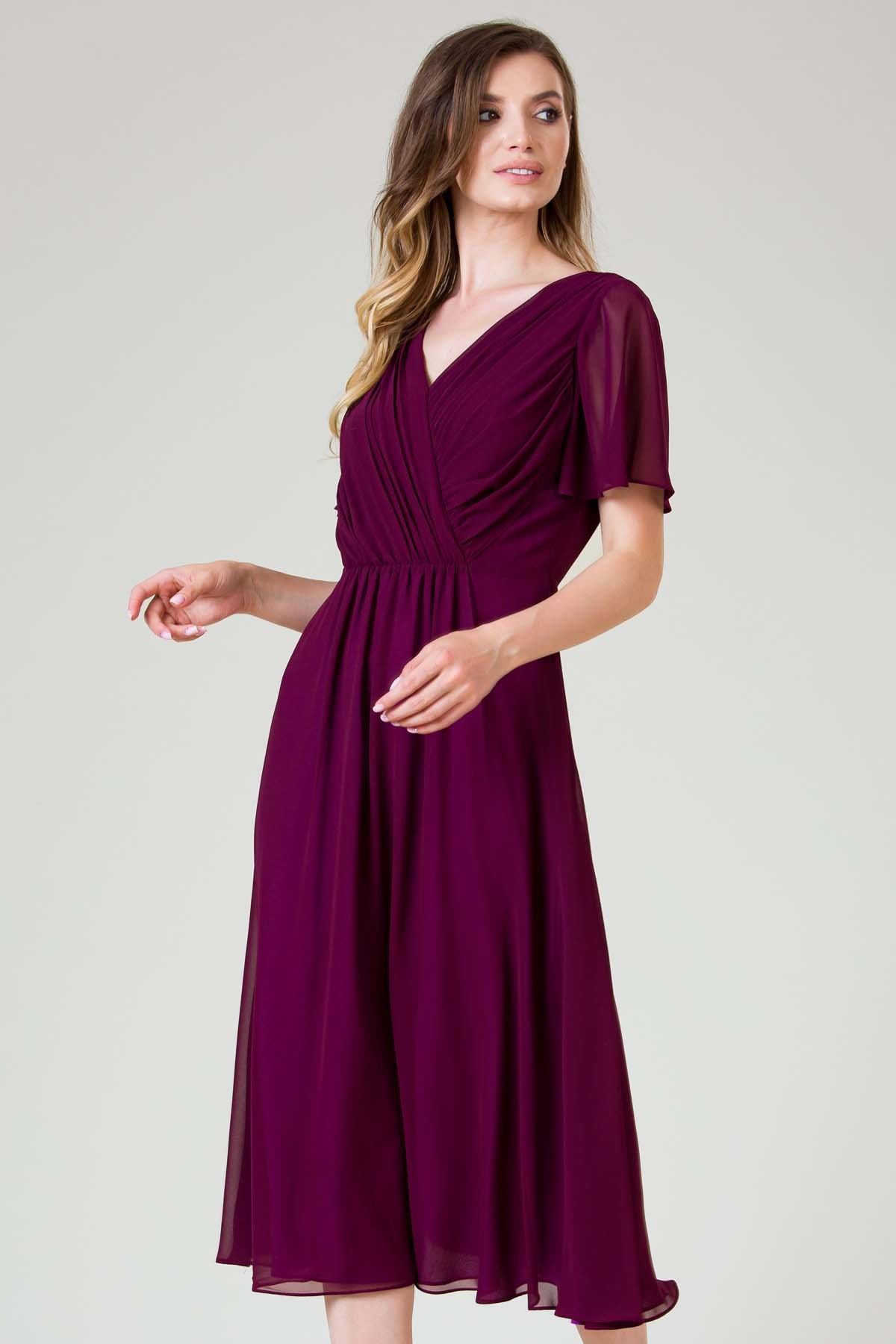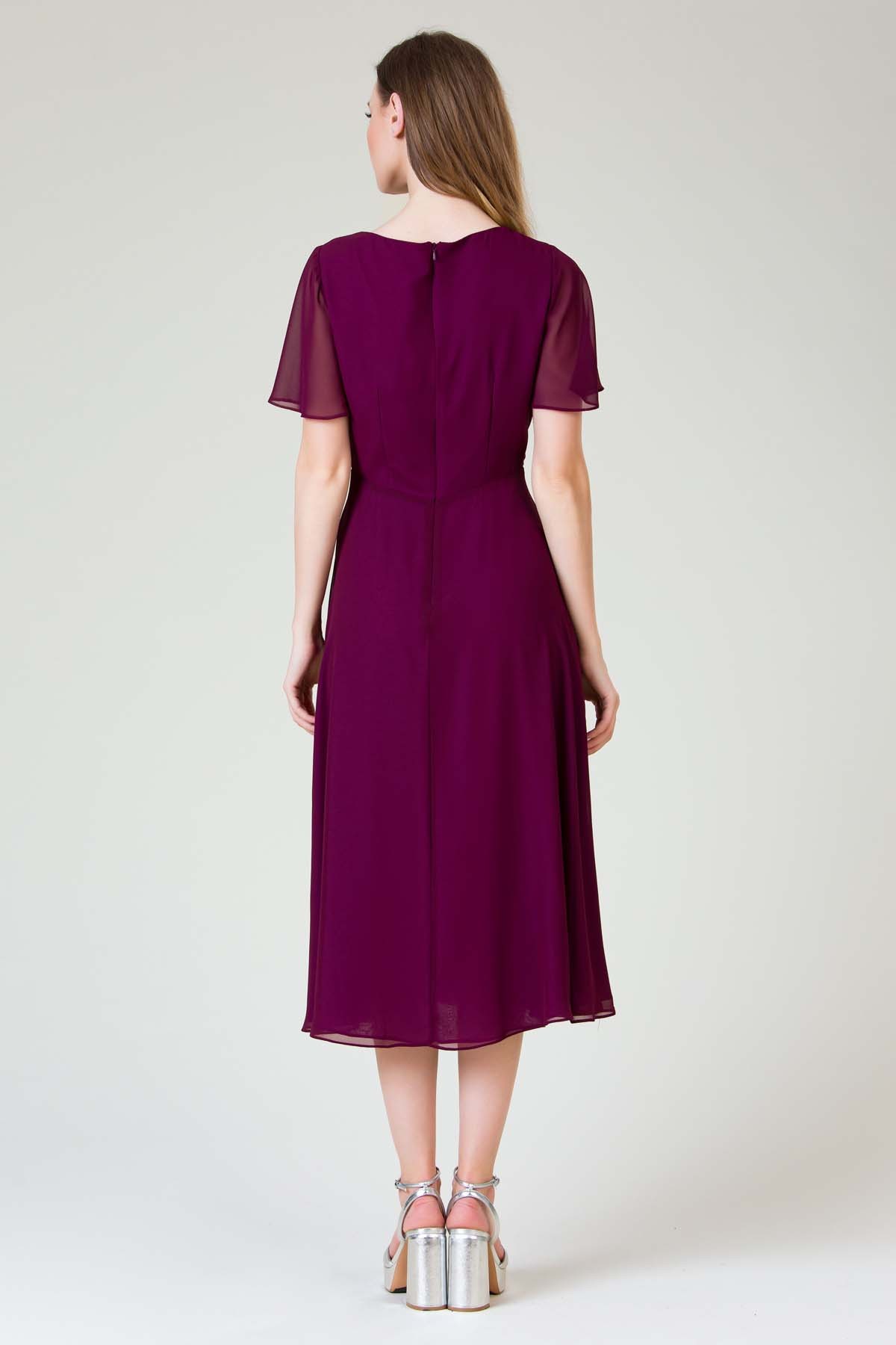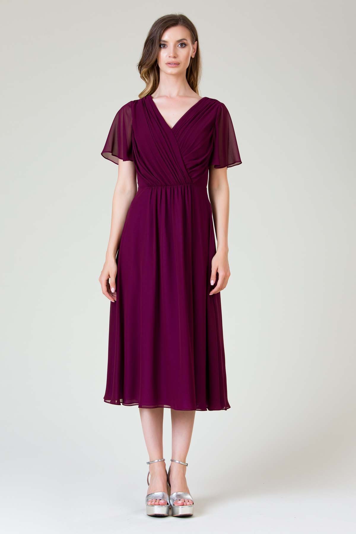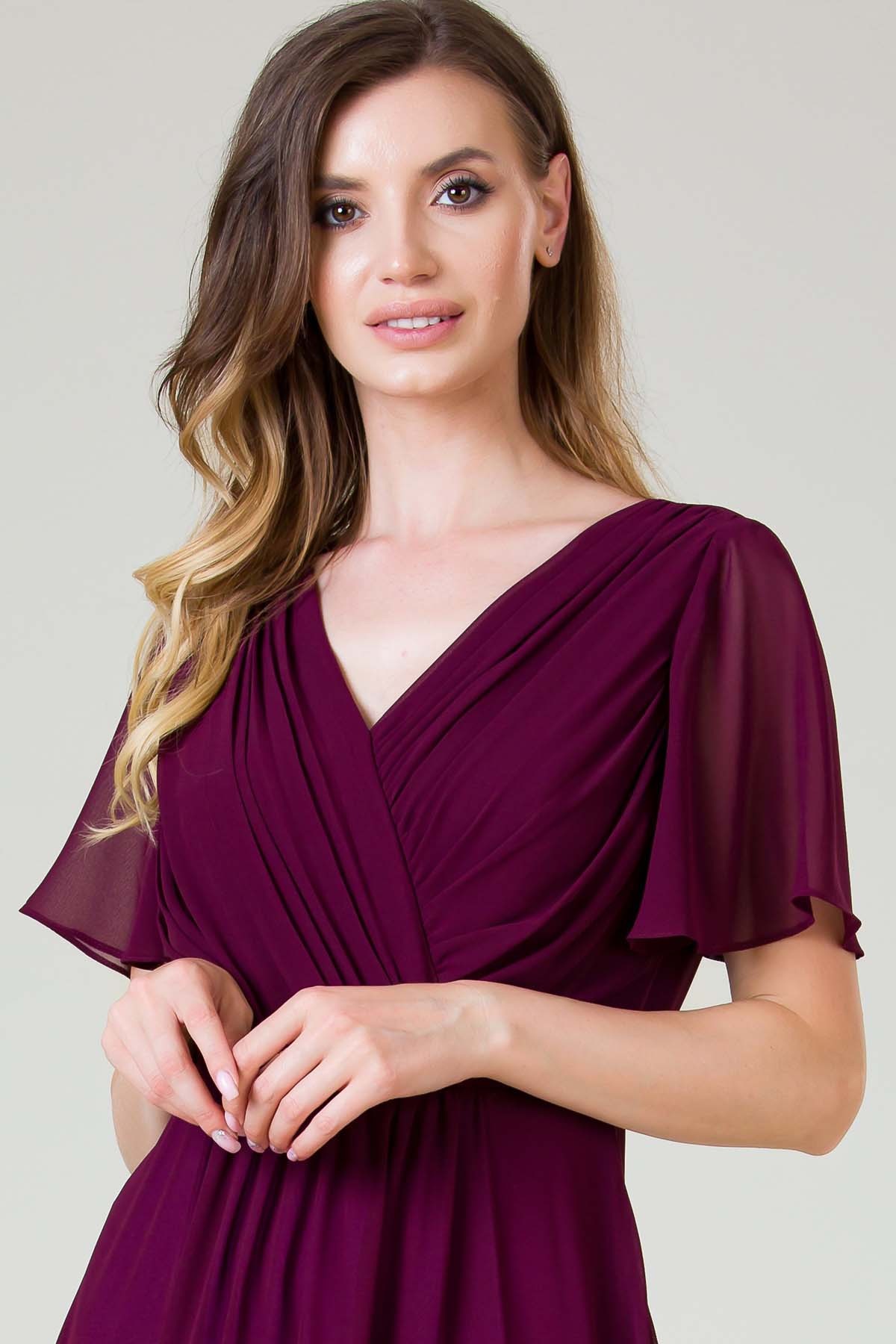 Rochie Alma din voal, croi feminin cu fronseuri in decolteu anchior si maneca clopot.