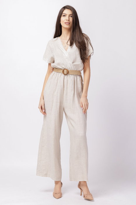 Are maneca scurta Are o despicatura pe spate ce se inchide cu nasturel Are decolteu in V, petrecut Are elastic in talie si curea din canepa cu catarama din lemn Are doua buzunare laterale ascunse Material: in (100%) Este talie unica si se potriveste…