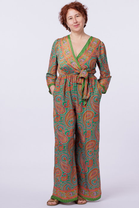 Are maneci 3 4 Se inchide la spate cu un nasturel Se leaga cu o funda din acelasi material pe talie In talie are elastic Buzunare ascunse Material: art silk 80% – amestec de matase cu alte fibre semisintetice, poliester 20% Este talie…
