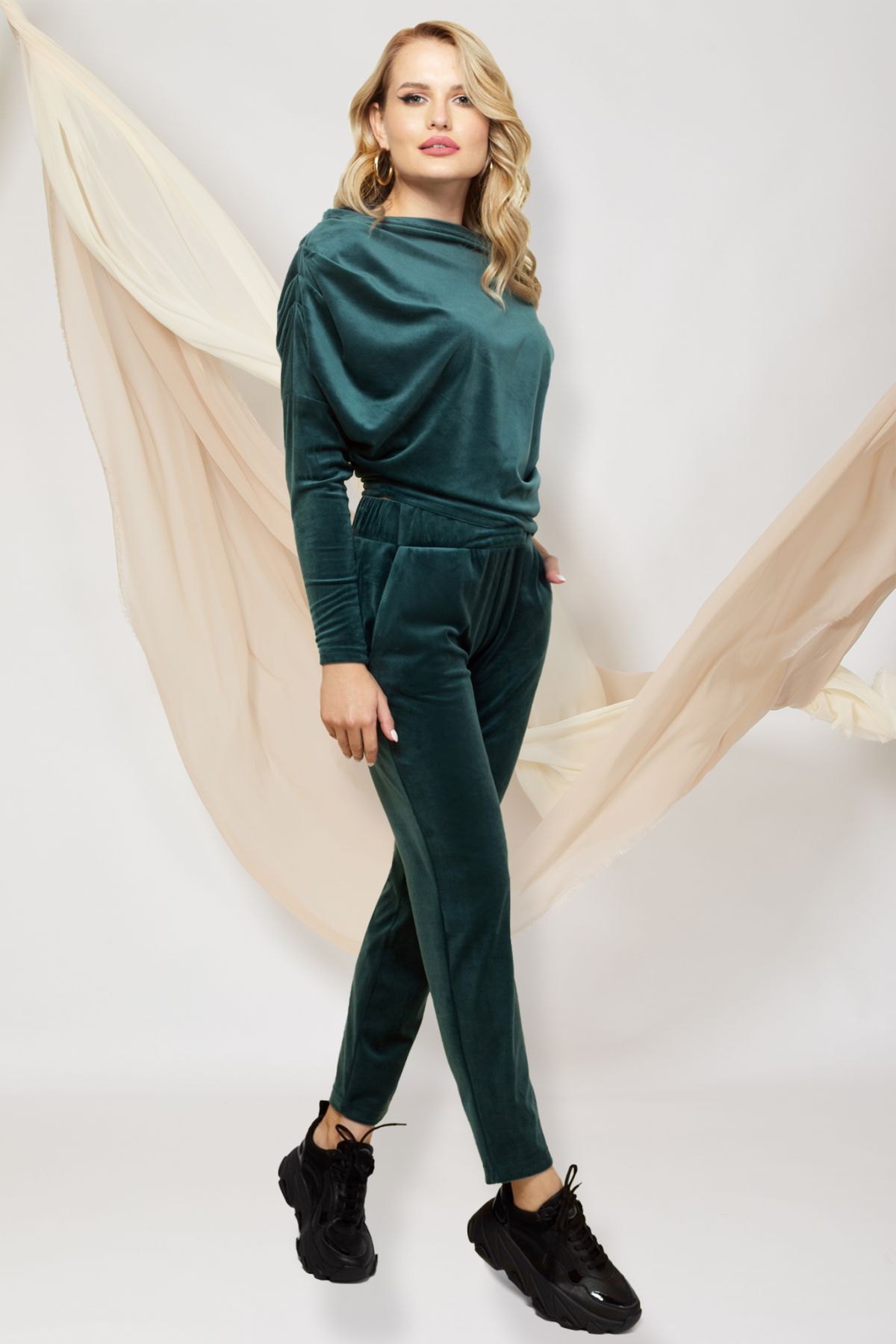 Comandă online o Trening Pretty Girl verde din catifea cu un umar gol cu livrare rapidă prin curier sau easybox!